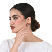 The Sanaar Gold 925 Sterling Silver Red, White & Green Kundan Floral Round Stud Earrings are a celebration of royal heritage and timeless beauty. Designed with precision, these earrings feature a radiant circular mandala-inspired motif adorned with red kundan squares, shimmering white kundan petals, and a striking green kundan stone at the center.