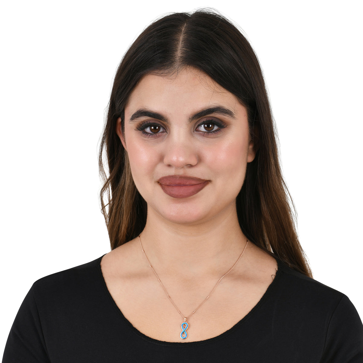 Sanaar Gold 925 Sterling Silver Rose Gold Plated Infinity Pendant Necklace with Blue Sparkle Enamel for Women & Girls | Elegant Love Symbol Gift Jewellery