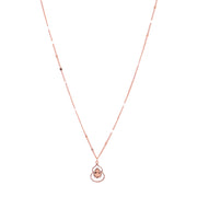 Crafted in pure sterling silver and finished in radiant rose gold plating, this necklace features a refined paisley-style teardrop pendant that exudes grace and sophistication.