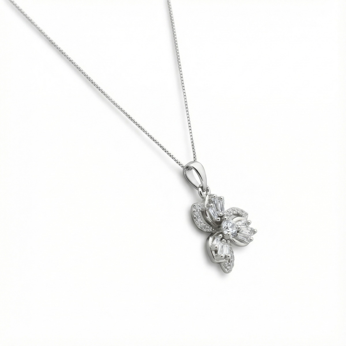 Silver Triple Flower CZ Pendant