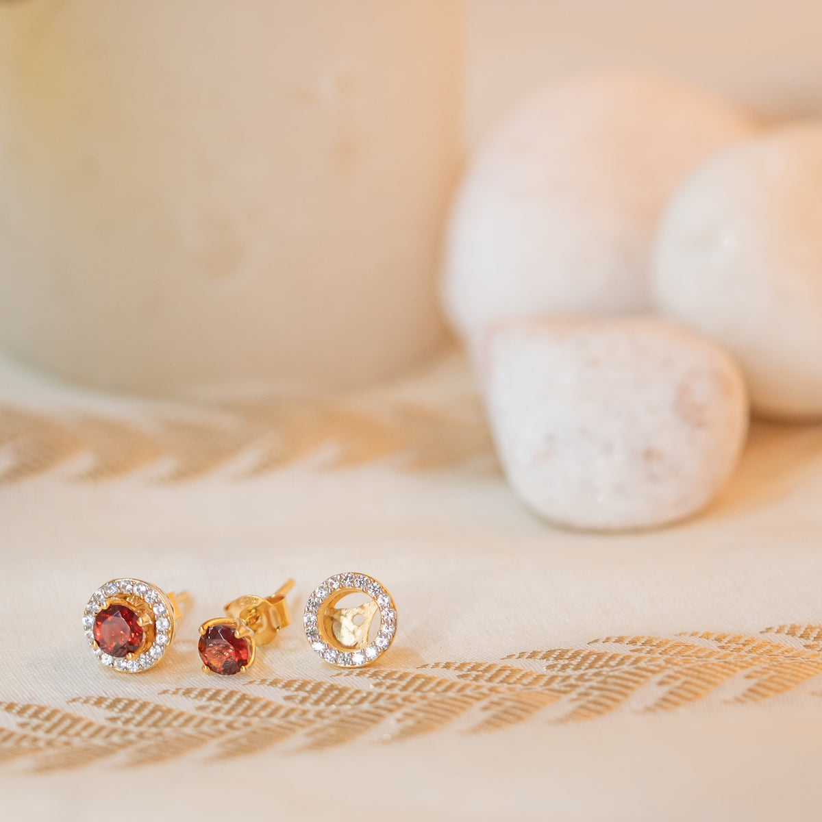 2-in-1 Detachable Design – Wear it in two versatile styles: 1️⃣ As classic Garnet solitaire studs 2️⃣ With a sparkling CZ halo frame for an elegant party look