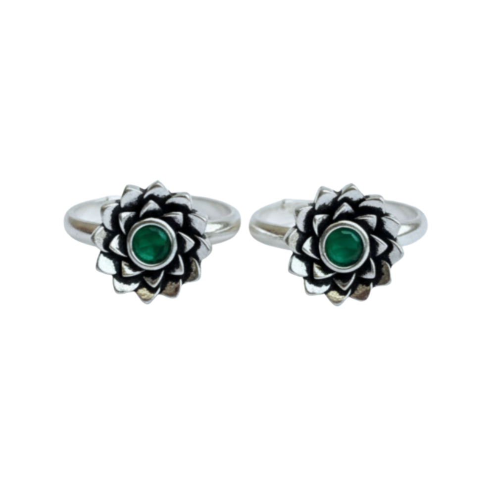 Oxidized Silver Leafshine Green Toe Ring