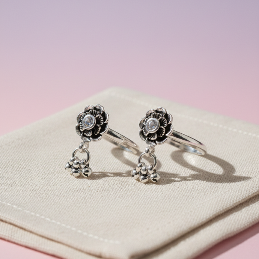 Silver Sterling Green Pop Toe Ring
