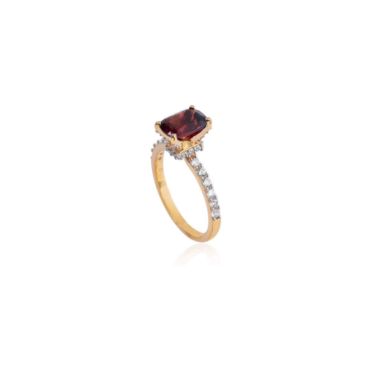 Enhance your style with this elegant Sanaar Gold 925 Sterling Silver Garnet Ring. Featuring a natural oval-cut Garnet gemstone, the ring glows with a rich, deep red hue – the timeless stone of love and vitality.
