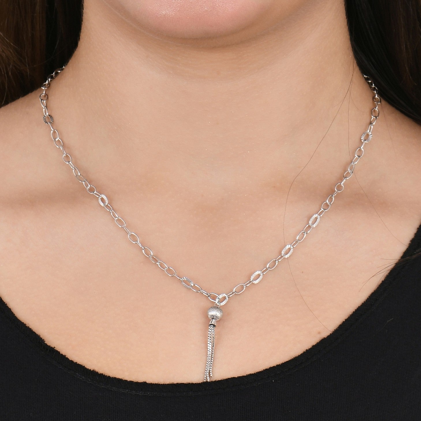 Sanaar Gold 925 Sterling Silver Textured Bead Tassel Pendant Necklace for Women & Girls | Elegant Chain Drop Design | Modern Minimal Silver Jewellery